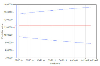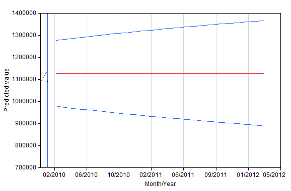 The 95% Confidence Interval ranges between 950K to 1.35m, which means that the forecast may range between the above values.